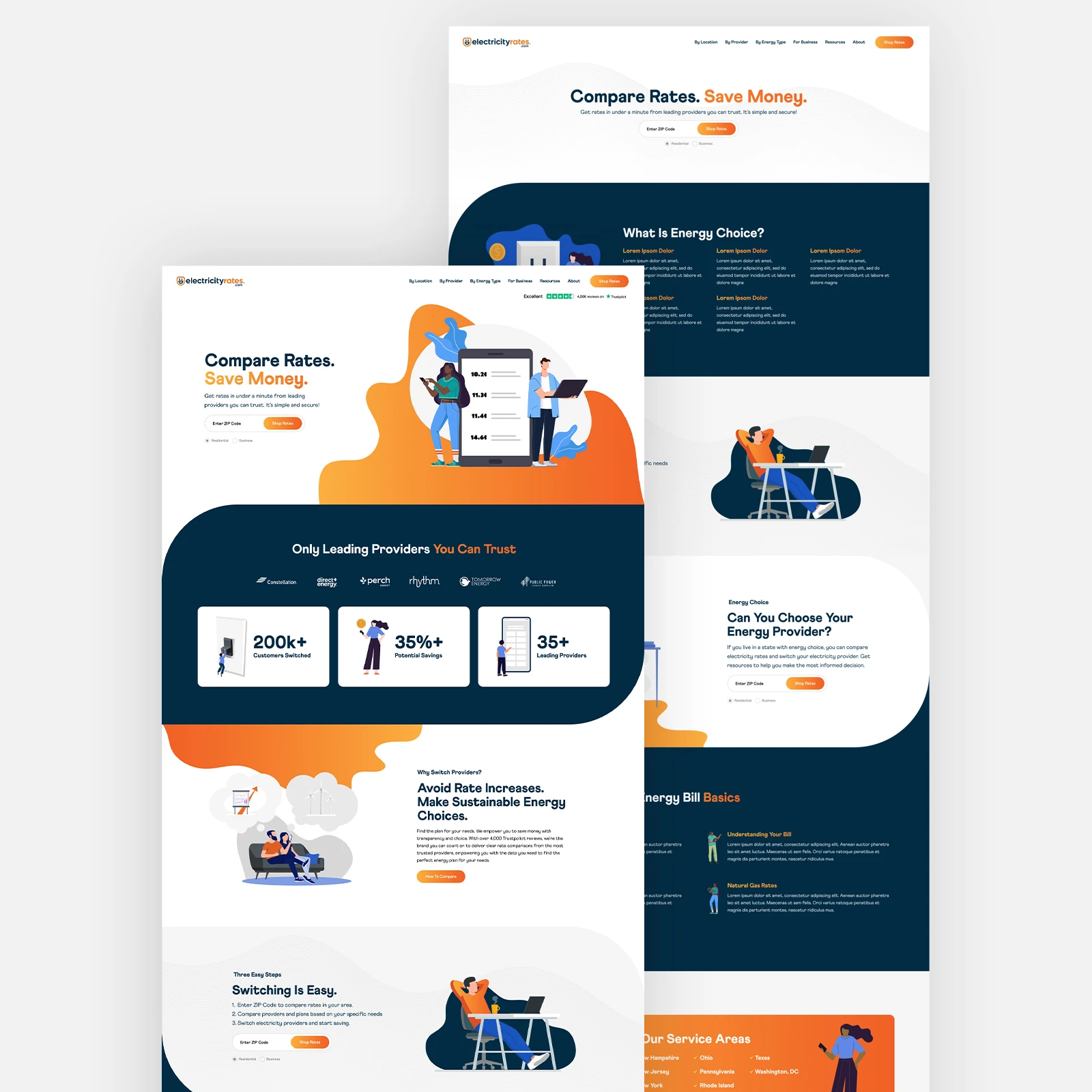 • Delivered a refreshed brand system and expressive interface that presents ElectricityRates.com as credible, trustworthy, and built for long-term partnership.