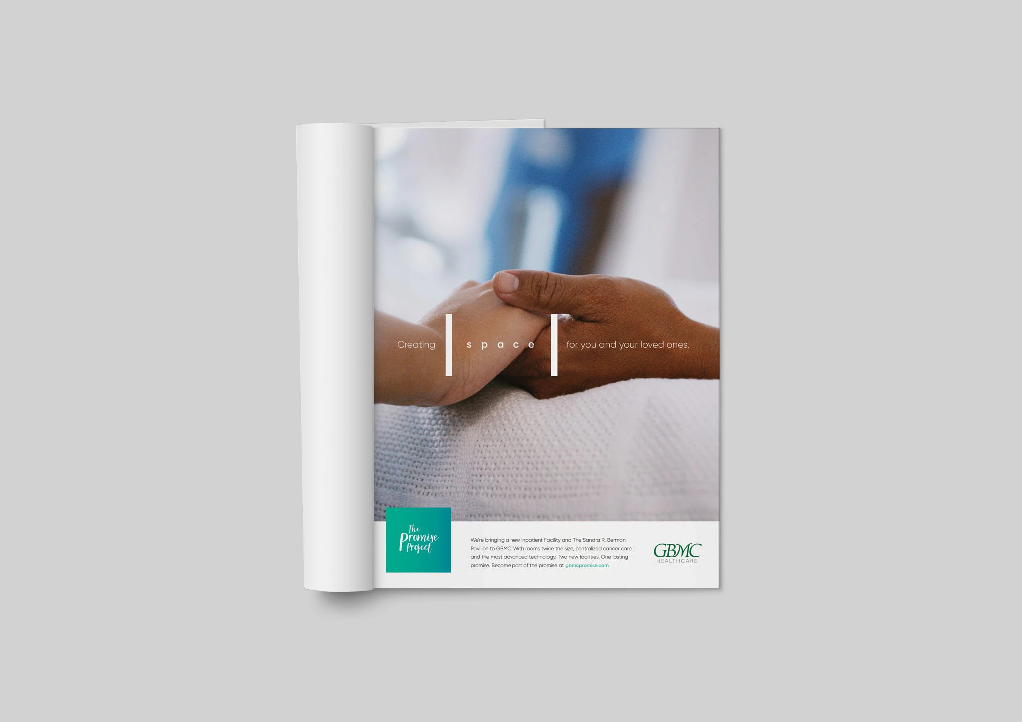 Vitamin developed an emotional, relatable tone for the campaign, connecting the concept of emotional space for healing with that of a physical space required for critical care. Vitamin designed and delivered a suite of marketing materials to support and promote the goals of The Promise Project, including the microsite, billboards, event banners, and environmental signage to live within GBMC. With the use of a 360-degree camera, we were able to fully capture the experience of being inside their state-of-the-art rooms on the landing page.