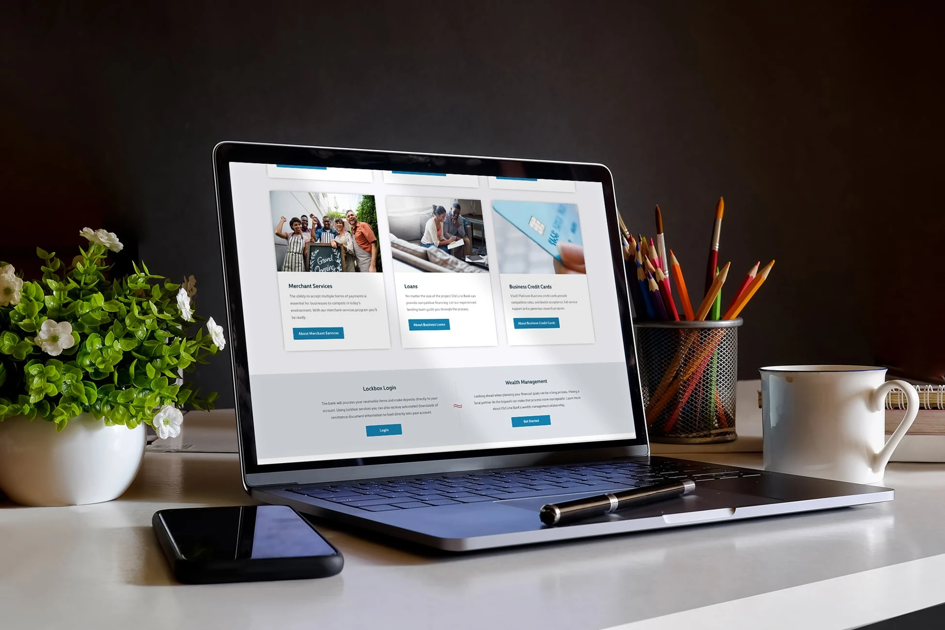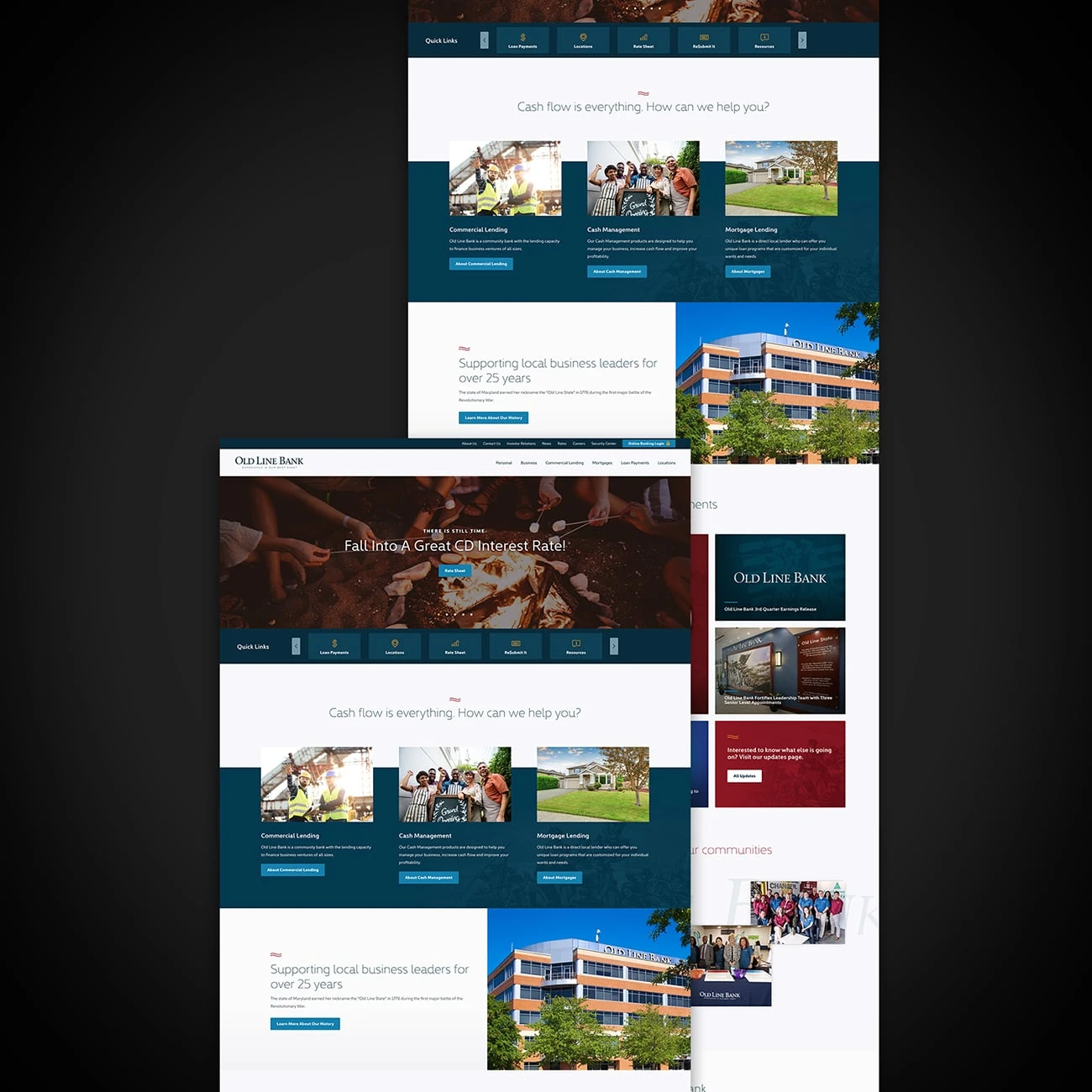 The website features promotional product components that enable Old Line Bank to highlight specific products throughout the year, based upon the quarterly goals of the bank.