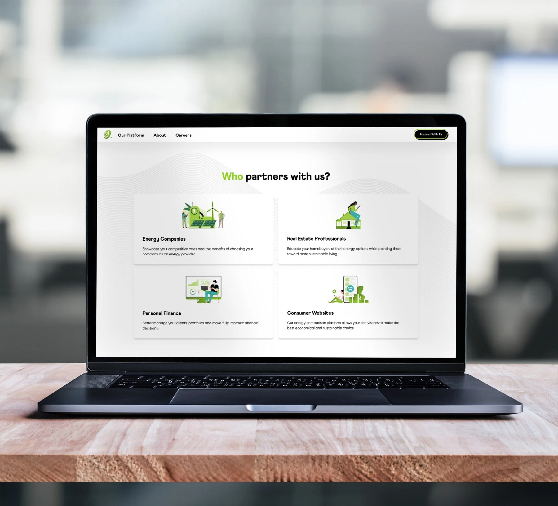 Power Target’s previous branding did not clearly position the platform as a trusted energy comparison solution. Our approach used color, space, and motion to convey confidence, clarity, and credibility. Green was introduced intentionally to signal Power Target’s commitment to sustainability and its role in advancing the energy conversation.