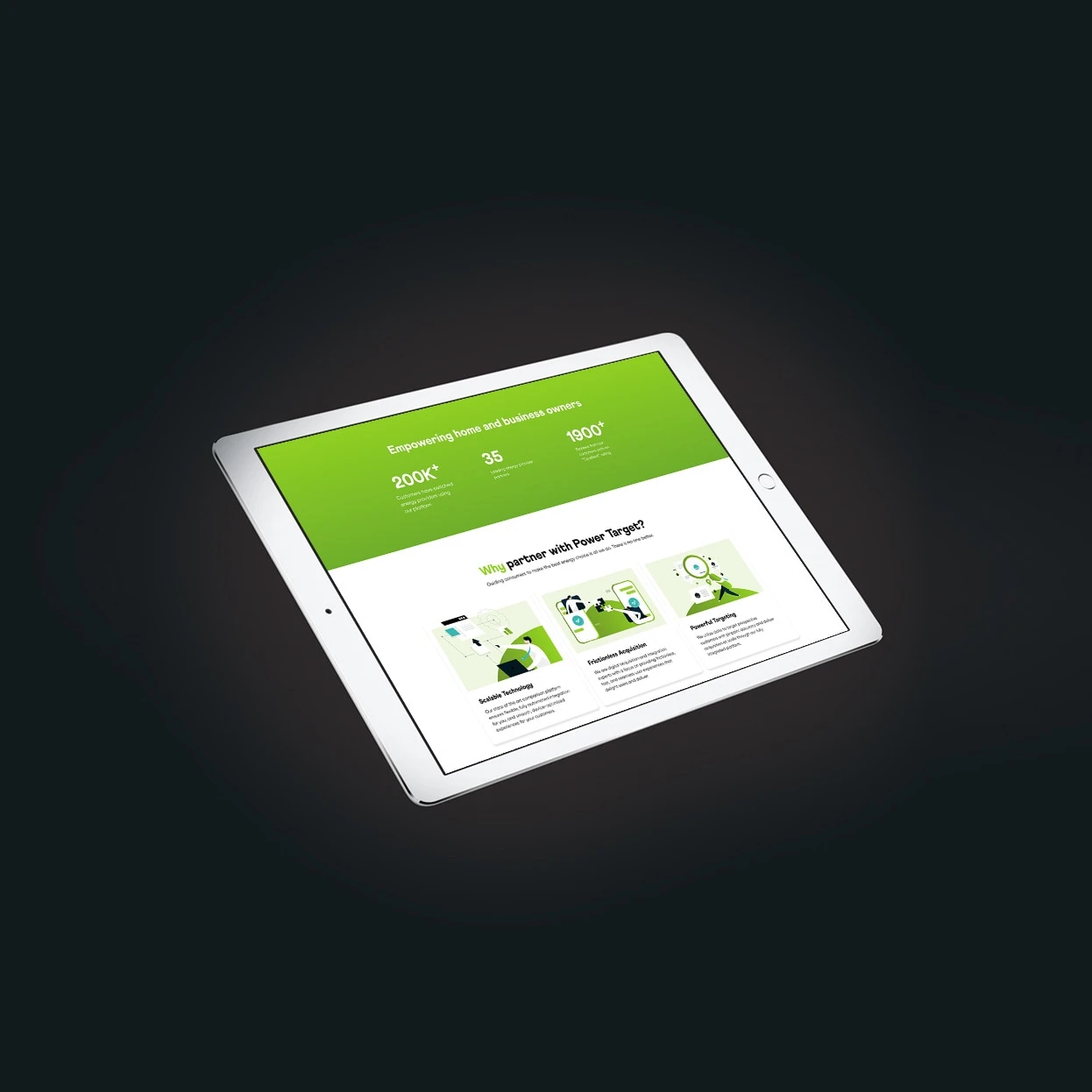 Power Target operates in a category of its own, but its digital presence lacked a clear persona prospects could connect with. We approached the platform like a SaaS product, designing a modern, data-driven experience that brings clarity and approachability to complex information. Strategic use of white space, infographics, and custom illustrations makes the platform’s value easy to understand. The result is an interface that clearly demonstrates how Power Target supports business goals while helping consumers take control of their energy decisions.