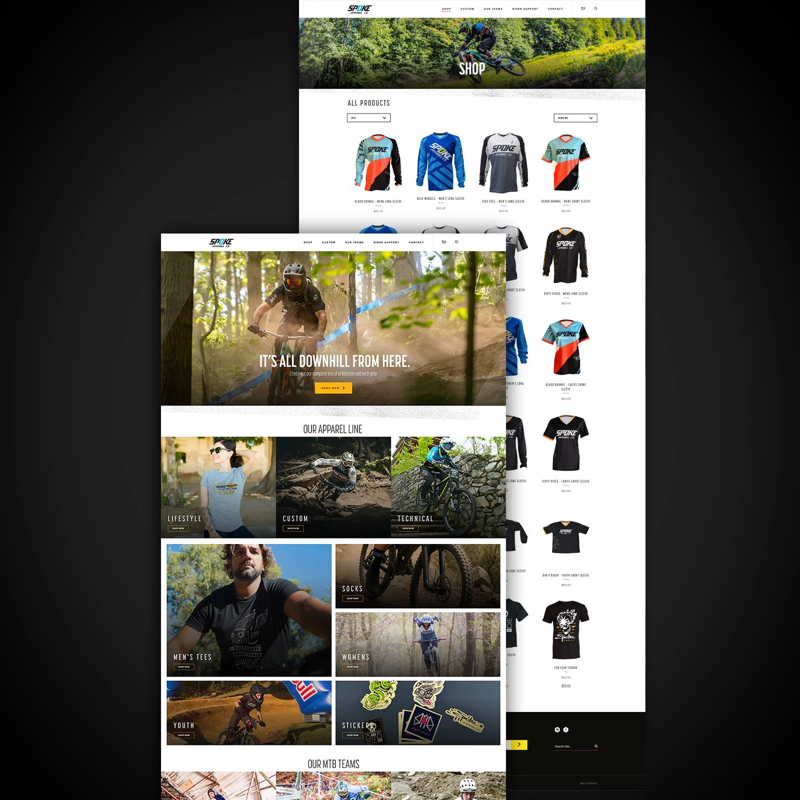 Spoke’s dye-sublimated technical apparel blends bold, expressive visuals with performance-first construction. Engineered to fit, breathe, and move, each men’s, women’s, and youth piece delivers comfort, durability, and standout style built for real riders.